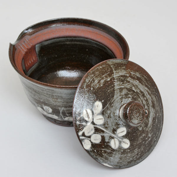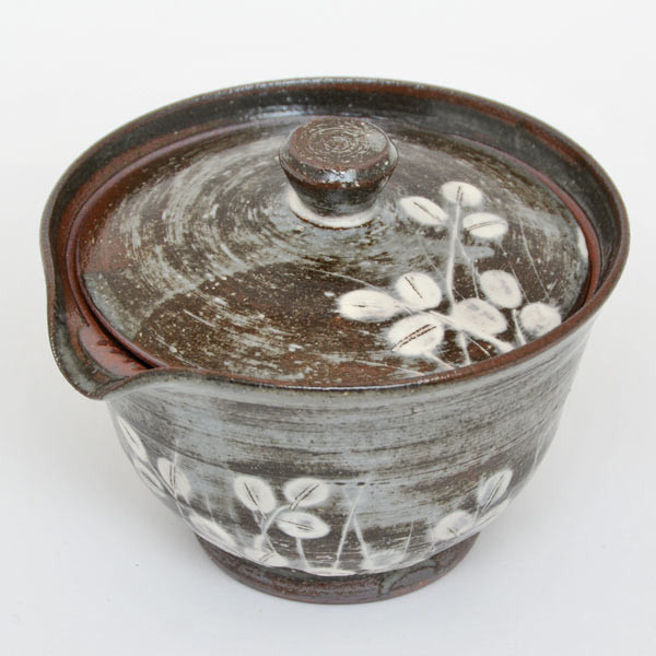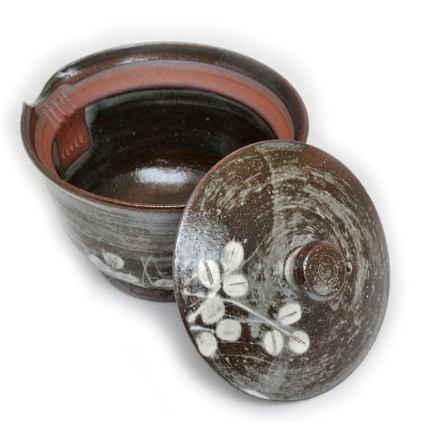 Shiboridashi Kyoyaki Hagi – elegantiškas, rankų darbo arbatinukas iš Kioto. Tamsiai rudos molio spalvos korpusą puošia subtilūs balti hagi žiedų šakelių piešiniai, suteikiantys jam išskirtinio švelnumo ir japoniškos estetikos.