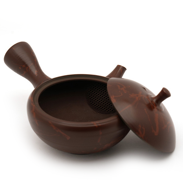Kyusu arbatinuko paviršus tamsiai rudos, lengvai blizgios spalvos, šiek tiek suplotos formos su patogia rankenėle. Arbatinuko dekoracijai panaudota benishibori technika – prieš degimą jis buvo apvyniotas jūros dumbliais. Šis keramikos dekoravimo būdas yra unikalus Tokoname regionui. Prie snapelio vidinėje arbatinuko pusėje įrengtas preciziškai atliktas keraminis arbatos sietelis. Po rankena įspausta meistro signatūra, patvirtinanti dirbinio kilmę ir autentiškumą.